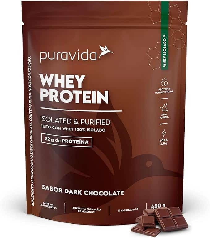 Em até 3x de R$ 40,00 sem juros Puravida Proteínas Whey Protein Isolado Dark Chocolate 450g