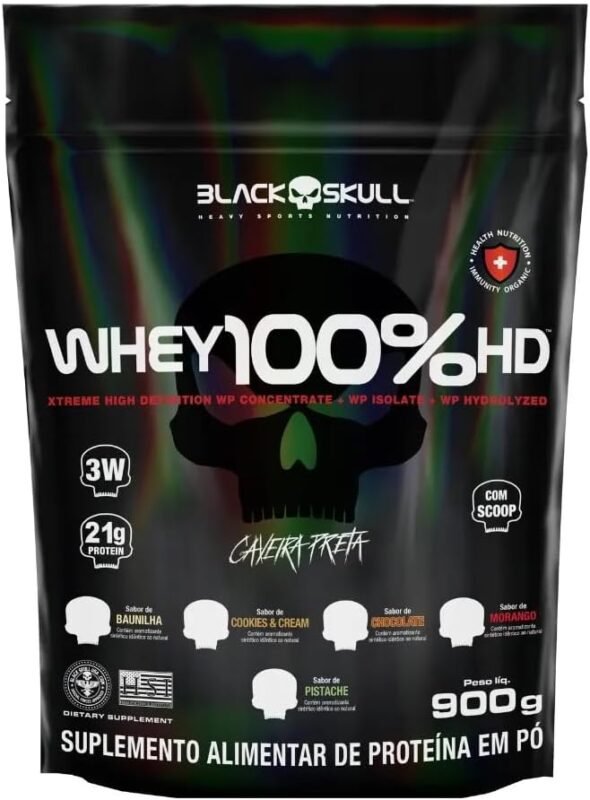 Em até 3x de R$ 58,00 sem juros Refil Whey 100% Hd Chocolate 900G, Black Skull