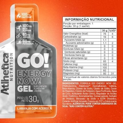 Atlhetica Nutrition GO ENERGY NOW GEL (10 sachês de 30g) Laranja com Acerola, Cor: Multicolorido.