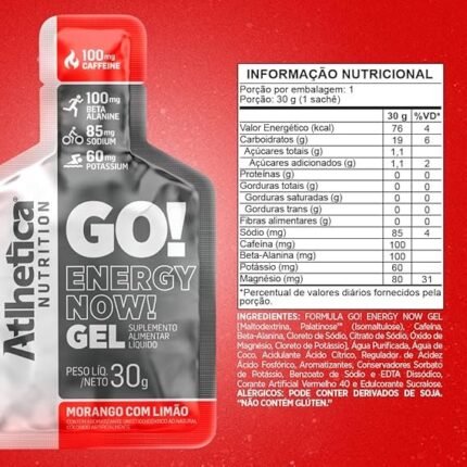 Atlhetica Nutrition GO! ENERGY NOW GEL (10 sachês de 30g) Morango com Limão, Multicolorido.