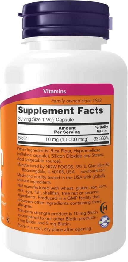 NOW Foods – Biotina de Força Extra 10000 mcg. – 120 cápsulas vegetais NOW Foods A biotina de força extra