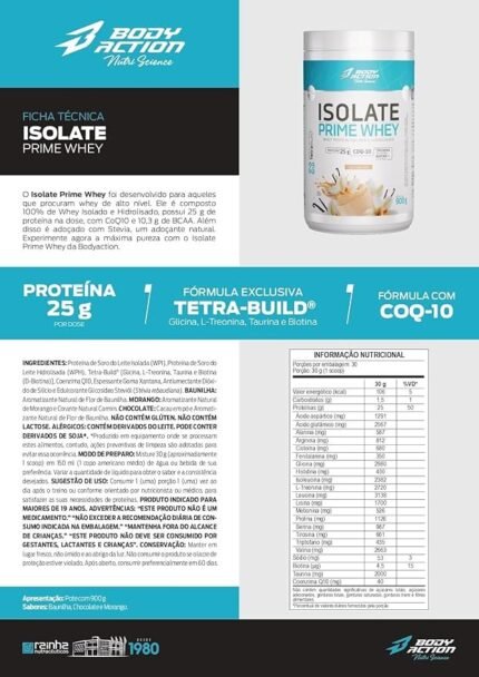 Isolate Prime Whey 900g Sabor Morango Bodyaction