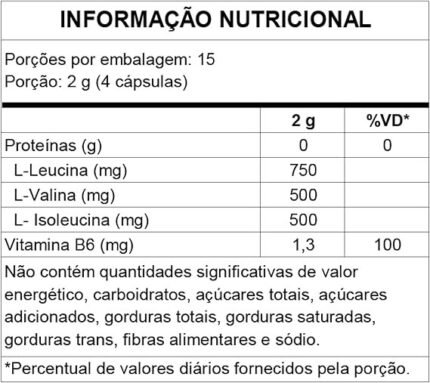 | Porção recomendada | Sugestão de uso: Adicione 1 dosador (5g) de BCAA 10:1:1 em 100 ml de água. |