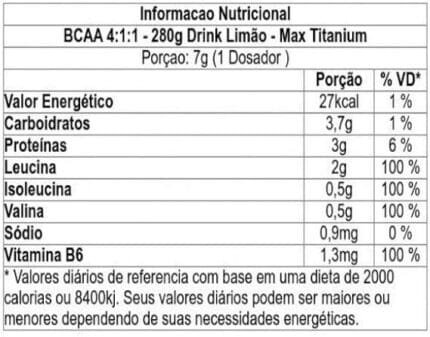 | Nome do produto | BCAA em pó 10:1:1 (3,9g por dose) – Limão |