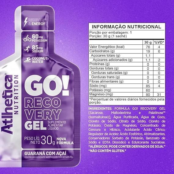 Nome do produto ‎GO! Recovery Gel Guaraná com Açaí Display com 10 Saches de 30g, Atlhetica Nutrition