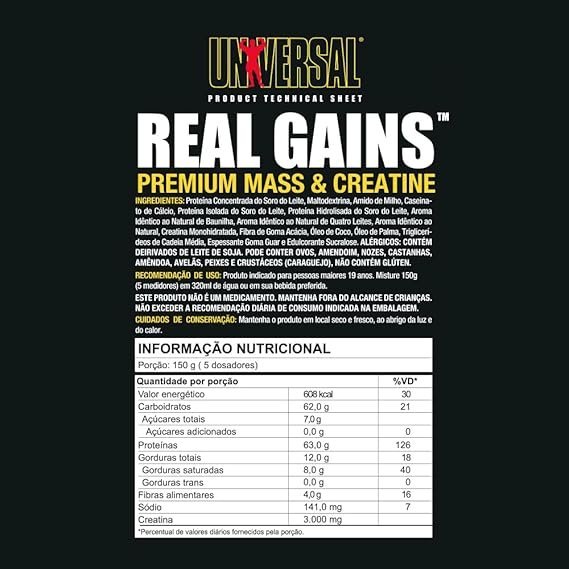 Hipercalórico Real Gains – Universal Nutrition (5Kg, Morango)