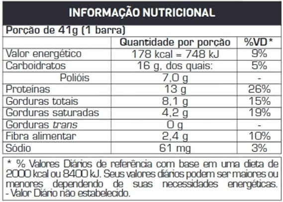Aditivos Cobertura sabor chocolate ao leite, proteína concentrada do soro do leite, recheio de ganache sabor caramelo zero adição de açúcar, caseinato de cálcio, colágeno hidrolisado, óleo de girassol, polidex Informações sobre alergia Leite Unidades 1 unidade Marca Max Titanium Formato Bar Descrição da faixa etária Adulto Número de unidades 12 Tamanho 41 g (Pacote de 12) Fabricante Max Titanium Número do modelo UK-YTIN-328 Dimensões do produto 9 x 10 x 10 cm; 565 g ASIN B0B3241KVW Funciona a bateria ou pilha? Não EAN 7899941202825 - Dimensões do produto : 9 x 10 x 10 cm; 565 g
