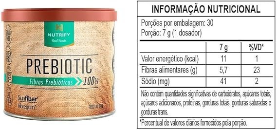 Nome do produto ‎Prebiotic 100% – 210G Neutro – Nutrify