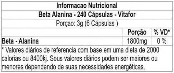 É um suplemento alimentar em cápsulas, que contém alta concentração do aminoácido beta-alanina, com zero adição de açúcares e corantes artificiais. Produto vegano. Não contém glúten